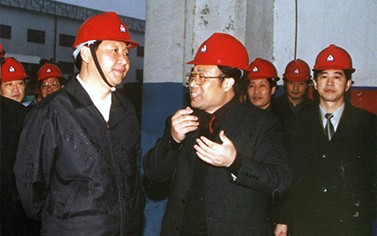 > 2002年12月,時任浙江省委書記習近平考察調研金洲管道生產基地。